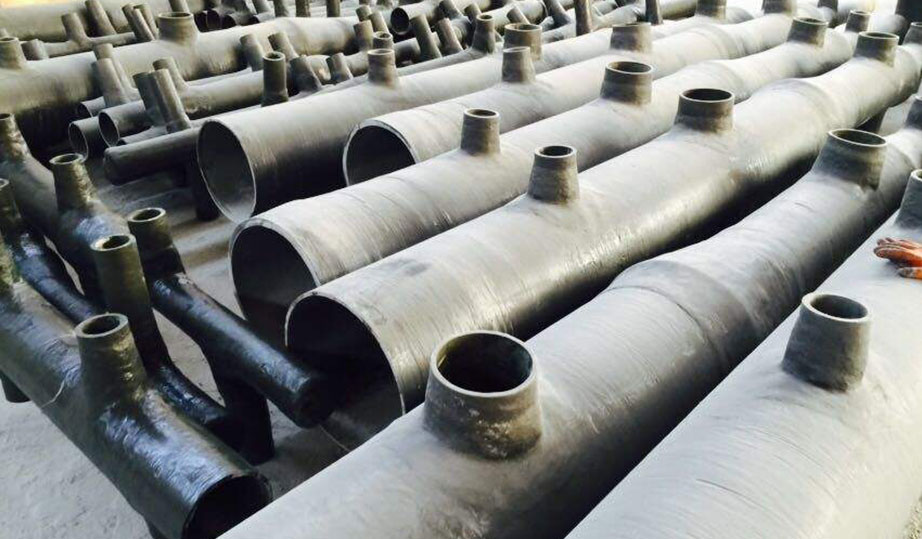 玻璃钢喷淋管位于脱硫塔第三层,Z上面是出口烟道,然后是除雾器冲洗层,再往下是玻璃钢喷淋管,玻璃钢喷淋管的层数是要根据塔的型号来定的,一般以四层的多一些,不过也有三层的,这个是要取决于设计处理的烟气量。玻璃钢喷淋管的作用是将脱硫浆液均匀的雾化成小液滴与烟气进行充分的反应将二氧化硫脱除。